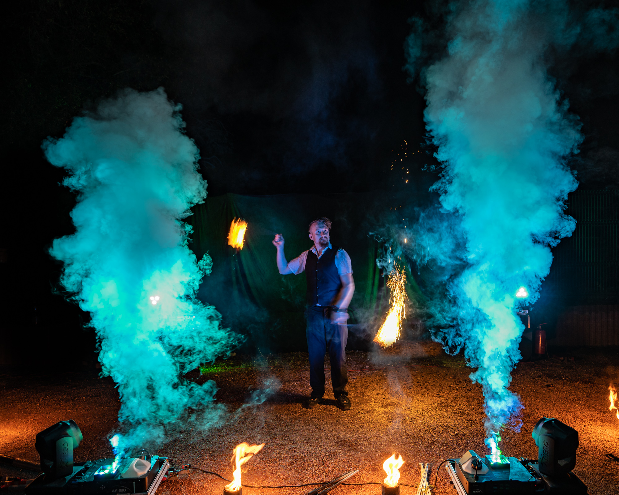 Ich kreiere für Ihre Veranstaltung ein unvergessliches Spektakel aus Feuer, Licht und Klang. Mit präzisen Choreografien, innovativer Technik und kunstvoll inszenierten Flammen erschaffe ich Momente voller Spannung und Emotion. Feuerpoi, Fackeln, Flammensysteme und Sparkulars vereinen sich zu einer dynamischen Performance, die sowohl am Tag als auch in der Nacht beeindruckt.
